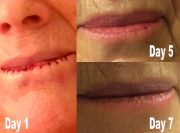 Hún byrjaði að nota gelið á vörina í ca 14 daga fyrir aðgerðina.